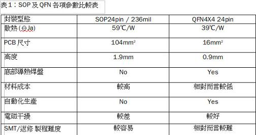 也就是說如果在相同的還境溫度及功耗其因為封裝的不同所停留在芯片上的節點溫度也會不同。舉例說明:若環境溫度為85°C,芯片的功耗為0.5W則SOP及QFN分別的溫度如下: