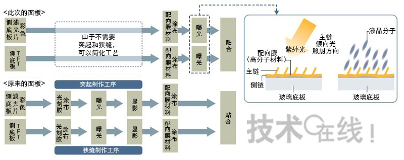 需代之以向配向膜照射紫外光的工序。(圖根據夏普的資料制成)