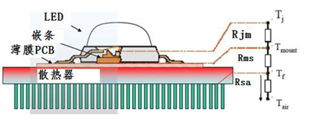 圖3.LED到散熱器各個(gè)熱阻的示意圖