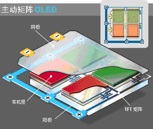 與TFT-LCD類似,OLED也可以做成“TFT-OLED”,以提高OLED的瞬態(tài)響應(yīng)性能,不過“TFT-OLED”人們卻用另一個名字來稱謂,它被稱為主動矩陣OLED (Active Matrix/Organic Light Emitting Diode,簡稱AM-OLED),如圖10所示。