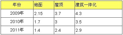 與此同時(shí)的各地政府也紛紛出臺(tái)政策刺激光伏電站的發(fā)展,杭州市提出“陽光屋頂”計(jì)劃,廣州,南昌,無錫,保定,上海紛紛提出了本地的光伏電站發(fā)展規(guī)劃,中國光伏最發(fā)達(dá)的江蘇省率先出臺(tái)了《太陽能光電建筑應(yīng)用財(cái)政補(bǔ)助資金管理暫行辦法》,其中規(guī)定,通過3年努力,力爭在全省建成光伏并網(wǎng)發(fā)電裝機(jī)容量400兆瓦,2009-2011年分年度目標(biāo)電價(jià)為: