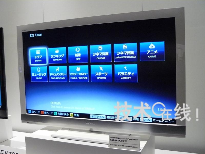 EX700系列還強化了網絡功能。新配備了名為“BRAVIA網絡頻道”的功能。用戶可利用索尼自主設計的操作畫面搜索并使用美國谷歌的視頻共享服務“YouTube”、USEN的VOD服務“U-NEXT”,acTVila的VOD(video on demand)服務“acTVila Video Full”。該公司預定2010年春季以后陸續啟動這些服務。