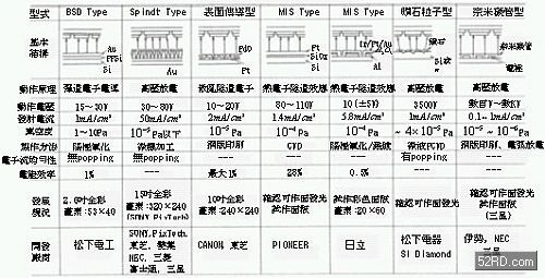 然電漿顯示器(plasma)與LCD(LiquidCrystalDisplay)等平面顯示器(FlatPanelDisplay)已經進入商品化階段,不過耗電量、輝度、對比以及動畫反應時間等問題,若與傳統CRT比較時仍有改善的空間,另一方面有機EL等諸多新世代平面顯示器(表1)卻面臨制程、成本、使用壽命、大型化等瓶頸,因此至今仍無法實用化。有鑑于此松下電工與東京農工大學利用BSD(BallisticelectronSurfaceemittingDevice)概念制作場發射顯示器(FED:FieldEmittingDisplay)。