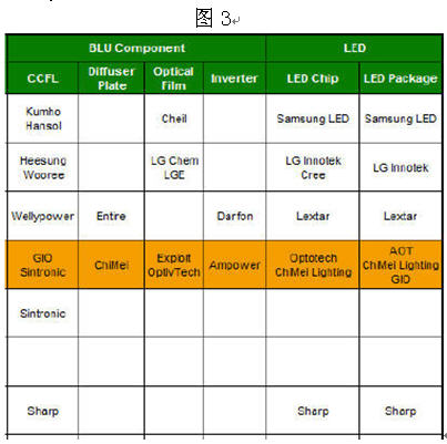 2. 目前正處于CCFL與LED背光產品世代交替之時, 整機廠商應積極主動掌握LED背光資源,逐步取代CCFL,均衡健康的完成內部供應鏈結構以及生產制造工序的調整。