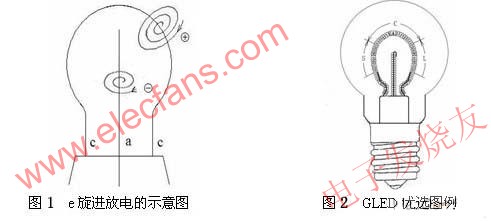 GLED的e旋進(jìn)放電激發(fā)的渾然一體的弧光放電球的外形與傳統(tǒng)的白熾燈泡殼匹配,這是顯而易見(jiàn)的。