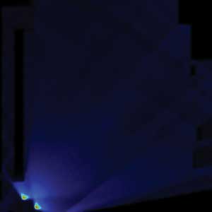 對于圖3中的例子,所用的是兩個側面發光高亮度LED器件,并使用經過優化的邊緣光源導光體進行光耦合。之后,為了確定系統中的自然光譜進行了基線光學建模。建模完成后,一個經過定制的光學透鏡陣列被增加進來,以改善從LED器件發出的可以利用的光,并且將光的出射范圍擴展到比LED器件制造商原始設計更廣的地步。