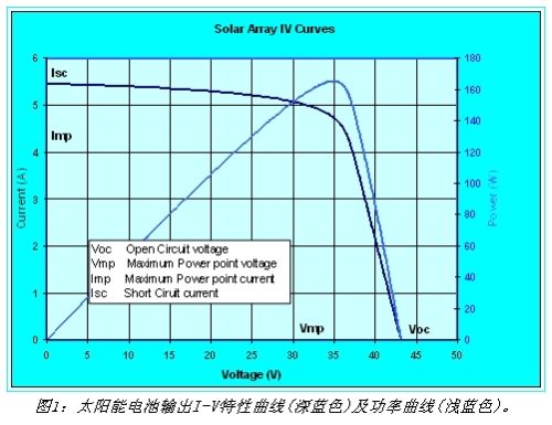 在上述公式的指導下,在太陽能方陣模擬器內部可以精確的建立一條I-V曲線,用來仿真某一特定環境條件下太陽能電池板的輸出,如圖1所示。無論負載如何改變,太陽能方陣模擬器的工作點將始終位于這條曲線之上。
