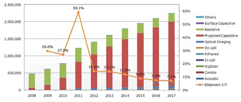 - 智能手機迅猛增長帶動觸摸面板市場迅速擴大