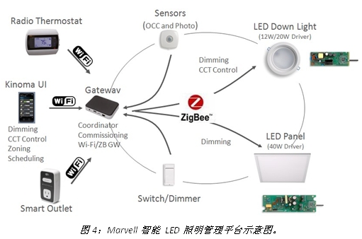 Marvell智能 LED照明管理平臺(tái)提供了完全集成的LED照明和無線控制系統(tǒng),因此不論是易用性的提升還是安裝成本的降低都趨向于極致,大大簡化了使用和維護(hù)難度,使得非專業(yè)人員也能輕松應(yīng)對。該平臺(tái)的一大特色是允許終端用戶可以使用智能手機(jī)和平板電腦方案,使他們可以方便地從任何地方管理、分析并維護(hù)一個(gè)更具性價(jià)比的數(shù)字照明方案。