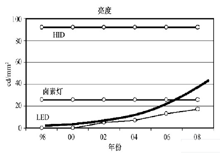 這種LED 新光源使得汽車燈具的風(fēng)格設(shè)計(jì)和造型布置具有空前的靈活性,且LED 光輸出功率密度在技術(shù)上已能夠與HID 燈具匹敵。因此一旦能降低成本并在技術(shù)上實(shí)現(xiàn)量產(chǎn),它極有希望把現(xiàn)存的其他照明技術(shù)淘汰出局而獨(dú)霸車燈市場(chǎng)。