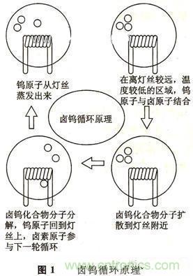 1959年人們發現鹵鎢循環可以大大減緩鎢的蒸發。進而發明了鹵素燈。提高了發光效率,延長了燈泡使用壽命。