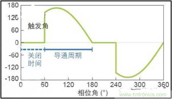 因此前沿切相調光的特點綜合起來就是:每半周期內,過零關斷,延時導通至半周期末。