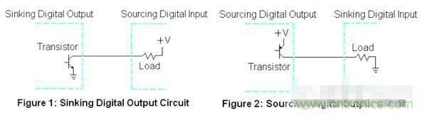 這里有必要提一下控制里常會提到的 Sinking(灌電流)和Sourcing (拉電流)的概念。借用一下數字控制里面的兩張圖說話: