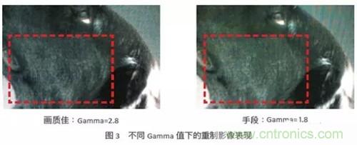 如果不采用提高LED順向電流的方式來掩蓋上述的缺點,另一種手段就是調整小點間距LED顯示屏的gamma曲線,灰階的亮度對于正確的影像重制是非常重要,因為在視訊源中亮度包含了大部份畫面數據。如圖3,右邊的圖像gamma值較小,代表中間色調的亮度太高,因此,整體畫面刷白又缺少深度,圖像上的細節損失不少,相較于左圖,右圖中的狗毛沒有那么有層次。