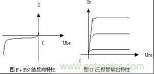 其實(shí),從二極管PN的反向截止特性曲線上很容易看出,只要將這個特性曲線轉(zhuǎn)過180度,如圖F所示,它的情形與三極管的輸出特性非常相似,三極管輸出特性如圖G所示。這說明了二極管與三極管在原理上存在著很必然的聯(lián)系。所以,在講解方法上選擇這樣的切入點(diǎn),從PN結(jié)的偏狀態(tài)入手講三極管,就顯得非常合適。而且,這樣的講解會使問題變得淺顯易懂生動形象,前后內(nèi)容之間自然和諧順理成章。