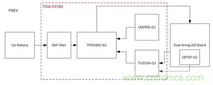 圖示1-大聯大世平推出基于TI產品的車輛日間行車燈LED驅動器參考設計系統架構圖