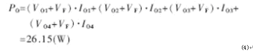 損耗功率PD主要取決于VI、多路輸出最大負載電流之和ΣILOAD以及主功率線圈比N等,其近似計算公式如下: