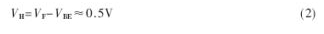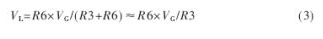 圖3中VF≈1V,施密特比較器的兩個(gè)比較點(diǎn)電壓分別為VH和VL,由式(2)和式(3)決定。