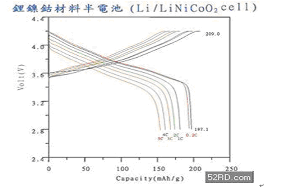 (圖八) 納米結(jié)構(gòu)鋰鎳鈷材料之充放電圖