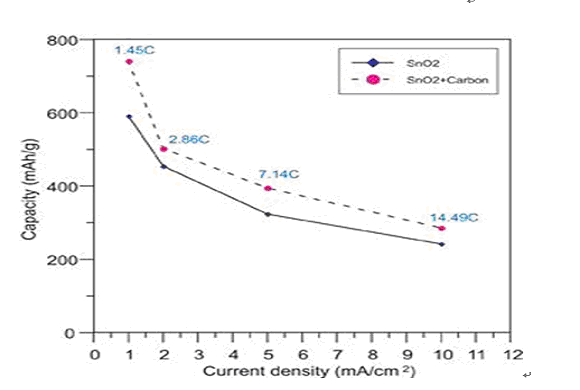 (圖四) 具納米氧化物及合金鍍層之負(fù)極碳材電化學(xué)特性