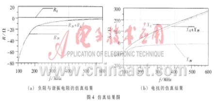 從圖4(a)的仿真結果可以看出,在200MHz附近,RIN+RL<0,所以滿足起振條件,由于RIN的負阻比較大,所以提供交流能量的能力比較強,故振蕩的幅度會比較大,這一點在后面的仿真和測試中可以得到證實。從圖4(b)可以看出,當f為200MHz左右時,XIN+XL=0,從而滿足相位平衡條件,它決定了振蕩的頻率。