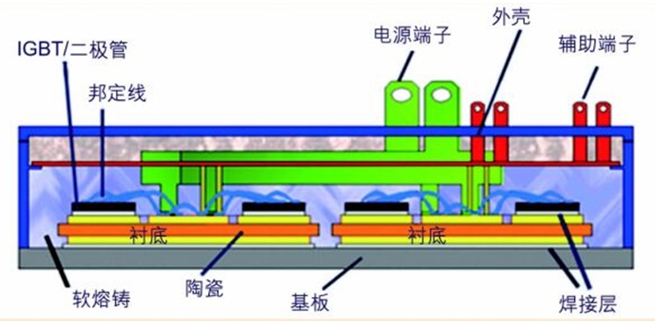 圖1:包括基板在內的IGBT模塊構架示意圖