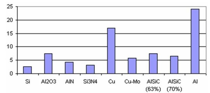 圖2:不同材料的熱膨脹系數(CTE)(ppm/K)