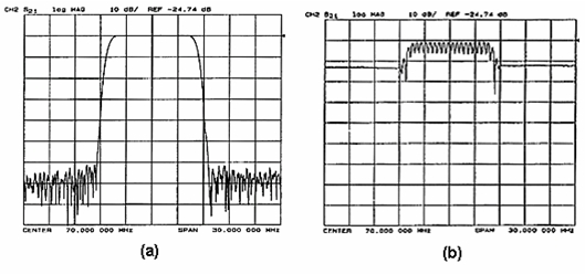 圖 3 SAW 濾波器的的直通信號(hào)抑制好(a)和差(b)對頻響的影響