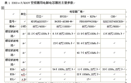 作為變頻器/逆變器的整流濾波電容器,其最主要的參數(shù)是額定電壓、電容量,通常采用電解電容器作為整流濾波電容器。但是電解電容器最大的缺點(diǎn)就是使用壽命問題,特別是在高溫條件下尤為明顯,電解電容器的壽命直接影響著變頻器/逆變器的使用壽命。在實(shí)際應(yīng)用中因?yàn)檫^大的紋波電流在濾波用電解電容器的ESR產(chǎn)生熱而是濾波用電解電容器的壽命大大減少,通常這個(gè)紋波電流確實(shí)無法見效的。