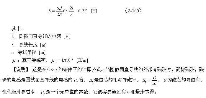 【說明】上式是用來計算變壓器線圈電感的計算公式。由于變壓器鐵芯的磁回路基本是封閉的,變壓器鐵芯的平均導磁率相對來說比較大。鐵芯的導磁率一般在產品技術手冊中都會給出,但由于大多數開關電源變壓器的鐵芯都留有氣隙,留有氣隙的磁回路會出現磁場強度以及磁感應強度分布不均勻,因此,(2-108)式中的導磁率只能使用平均導磁率,技術手冊中的數據不能直接使用。