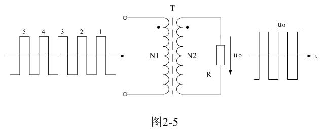 為了簡單起見,我們把雙激式變壓器開關電源等效成如圖2-5所示電路。圖2-5與圖2-1所示電路的不同之處在于,圖2-1輸入電壓是直流脈沖方波,而圖2-5輸入電壓是交流脈沖電壓方波。因此,圖2-5所示電路與一般的變壓器電路在工作原理上沒有根本的區別。