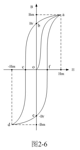 但對于交流脈沖,磁通密度由0經過磁化曲線o-a上升到最大值Bm之外,后面任何一個電壓脈沖加于變壓器初級線圈a、b兩端,變壓器鐵芯被磁化,磁通密度都不會再經過磁化曲線o-a。因此,圖2-6中磁化曲線o-a與圖2-4所示的磁化曲線B一樣,也叫初始磁化曲線或基本磁化曲線。