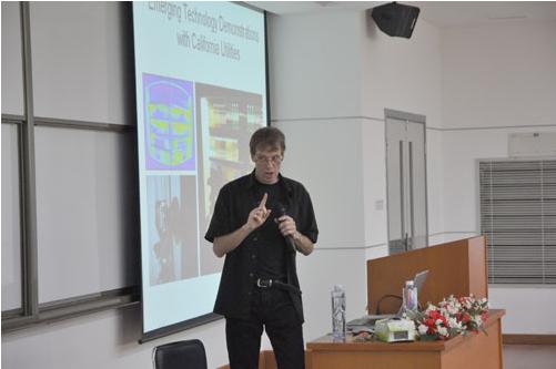 在課堂上,美國加州照明技術中心主任Michael Siminovitch教授講授的課程是《LED室內照明設計》。他認為住宅照明是LED最大的增長機會之一,加州州長07年簽署的法案規定2018年室內住宅照明耗電必須比2007年下降50%以上。他舉LED廚房照明為例,采用白熾燈的話要700瓦,改為LED燈具后,功率可以降到100-150瓦。他指出1200萬家庭的廚房每家功率節省192瓦,那么總共可以節省2.33GW,相當于加州最大核電站的功率。他從眩光、顏色、成本、耐用性和效率等方面講述了LED在室內照明的應用潛力。演講中他列舉了很多應用案例,包括零售店、辦公室、車庫等場所。