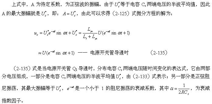 直到t2時(shí)刻,流過(guò)Ls的電流等于0,電容器Cs充電結(jié)束,同時(shí)Cs兩端的電壓也達(dá)到最大值;然后電容按正弦曲線開(kāi)始放電,流過(guò)Ls的電流開(kāi)始反向,到t3時(shí)刻,Cs兩端的電壓又與輸入電壓U相等,電容停止放電,但流過(guò)Ls的電流不能為0,Ls將又產(chǎn)生反電動(dòng)勢(shì)給電容Cs進(jìn)行反向充電,所以Cs兩端的電壓低于輸入電壓U。