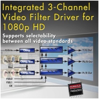 飛兆半導體公司 (Fairchild Semiconductor) 宣布推出突破性的視頻濾波器產品FMS6303,支持新興的1080p高清(HD)標準,適用于高清液晶電視、藍光DVD播放器和機頂盒。 FMS6303視頻濾波器提供了從標清到1080p 高清的選擇能力,為視頻應用的設計人員提供了比現有集成式視頻濾波器更大的靈活性。該器件支持三個通道,并可選擇8MHz、16MHz、32MHz和65MHz頻率,適合全部視頻標準范圍。此外,FMS6303提供了穩健的8kV ESD保護功能,能夠保護設備避免因靜態放電而導致損壞,并可省去分立保護器件。相比分立式解決方案,FMS6303可讓輸入和輸出進行AC或DC耦合,能夠減少多達6個組件,節省約10%的電路板空間。