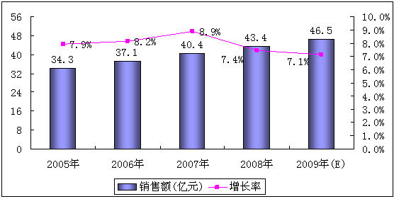 2008年,中國通信電源市場實現銷售額43.4億元,同比增長7.4%,增長幅度較2007年略有下滑。2009年,隨著中國3G網絡建設的開展,中國通信電源市場有望保持穩步增長,市場銷售額有望達到46.5億元。