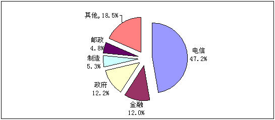 通信電源需求呈擴散化發展。2008年通信電源市場主要由電信、金融、政府和制造行業市場構成,這四個平行市場的份額超過75%。其中電信行業占據整體份額的47.2%,為通信電源第一大應用行業。但是隨著不同行業信息化建設的深入,通信電源需求出現擴散化的趨勢,從長期來看,制造業、政府等領域將成為今后增長較快的應用市場。