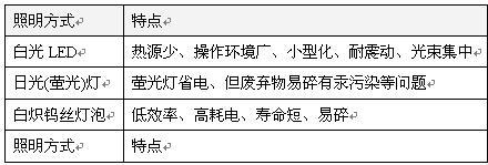 隨著制造技術在近十年來的突飛猛進,上述缺點,包括LED的熱阻逐漸降低、光品質也在提升中。2008年,除了LED白冷光的發光效率已達到100Lm/W,而LED暖白光的發光效率,預計在2010年,也可從目前的70Lm/W提高至100Lm/W。與目前其它通用光源相較,鎢絲燈泡約15Lm/W、螢光日光燈約45~60Lm/W、HID燈約120~150Lm/W,LED的發光效率顯然已漸具優勢;以下是針對LED及其它常見燈具的燈性比較: