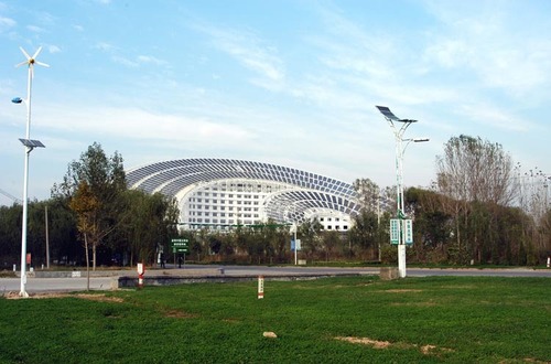 2009年12月24日,圣誕夜,全球最大太陽能辦公大樓正式啟用。這座名為“日月壇-微排大廈”的太陽能大樓,總建筑面積達(dá)到7.5萬平方米,集展示、科研、辦公、會(huì)議、培訓(xùn)、賓館等功能于一身,采用全球首創(chuàng)太陽能熱水供應(yīng)、采暖、制冷、光伏發(fā)電等與建筑結(jié)合技術(shù),是目前世界上最大的集太陽能光熱、光伏、建筑節(jié)能于一體的高層公共建筑。