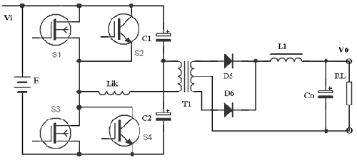 這種技術因通態損耗很低而使得DC/DC變換器的效率很高。但需工作頻率相對較低,一般選取20~40kHz。由于半橋組合開關只需兩個開關,總的開關器件的數目少,使可靠性顯著提高。