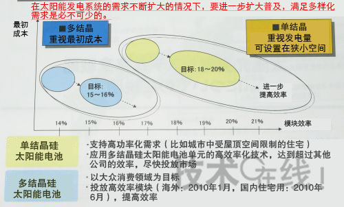 單晶Si型的模塊轉(zhuǎn)換效率設(shè)想最初為近17%左右,但“為了與其他公司競爭,將力爭盡快提高到18~20%”(有本)。