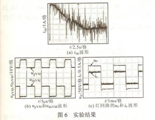 在前述原理分析和實現方案討論的基礎上進行了實驗論證。實驗樣機是額定功率為35W汽車頭燈電子鎮流器。升壓電路采用反激式電路,選用UC3843作為PWM控制芯片。主要電路參數有:反激式電路的MOSFET開關管選用的IRF540;二極管選用MUR860,變壓器的初級電感Lp=7.8µH,輸出電容選擇耐壓為630V的1µF的CBB電容。圖6b示出反激式變換器穩態下開關管的驅動電壓UgVM和開關管漏源極兩端的電壓UdsVM實驗波形。可見,UdsVM有一個很大的尖峰,是漏感的能量所致。圖6c示出穩態時兩端的電壓uo及其流過燈的電流io實際工作波形。由圖可見,燈兩端的輸出功率將近達35W,這與理論設計符合得很好。