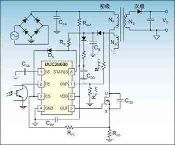 反激式控制IC就是利用這些技術(shù)開發(fā)的。比如,TI最近推出的UCC28600準(zhǔn)諧振綠色模式反激式控制器就是此類IC的一種。它在反激式變換器中的典型配置如圖1所示。下文中我們將進(jìn)一步討論這些技術(shù)是如何提高AC/DC轉(zhuǎn)換器的效率并優(yōu)化節(jié)能的。