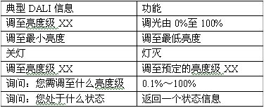 表1為一些DALI的典型調光命令