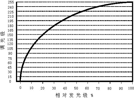 圖1DALI的256級對數調光曲線