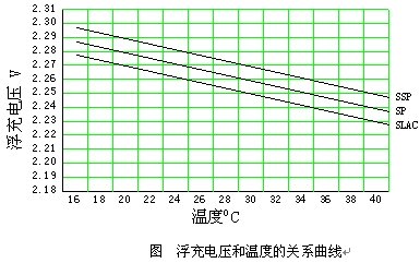 在電源系統(tǒng)中,電池總是在線備用工作的,這樣電池基本處于長期的浮充狀態(tài)中,浮充電壓的選取對(duì)電池的長期可靠運(yùn)行起著至關(guān)重要的作用,正如前面看到的,偏高的浮充電壓會(huì)造成電池緩慢失水并發(fā)產(chǎn)生熱失控而使電池失效;偏低的浮充電壓會(huì)造成電池長期處于充不飽電的狀態(tài),使電池發(fā)生硫酸化而導(dǎo)致電池失效。正確的浮充電壓一般應(yīng)選在2.23V/單體.,并應(yīng)隨同電池工作溫度進(jìn)行相應(yīng)調(diào)整,由于電池生產(chǎn)廠家的不同,這一參數(shù)會(huì)有一些差異,應(yīng)嚴(yán)格按照廠家提供的參數(shù)選取。下圖是某廠家電池浮充電壓同溫度的關(guān)系曲線。