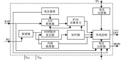 首先,由振蕩器和內(nèi)部振蕩器共同作用到時(shí)鐘脈沖發(fā)生器,產(chǎn)生時(shí)鐘信號(hào),用來(lái)控制D/A轉(zhuǎn)換、-ΔV運(yùn)算器及其他有關(guān)單元電路,并使之同步工作。該充電芯片在中斷充電電流期間進(jìn)行采樣,以求采樣的精確。采樣電壓從腳4(BAT)進(jìn)入電路內(nèi)部,經(jīng)A/D轉(zhuǎn)換后送入-ΔV運(yùn)算器處理,并將運(yùn)算結(jié)果送入充電控制單元,隨時(shí)控制充電過(guò)程。