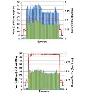 圖1描述了一臺使用兩種不同電源適配器供電的筆記本電腦的功率消耗。即使實際負載一樣,從電力線上供應的功率也有很大的不同。這些有價值的信息現在都可以非常容易地獲得。統計的結果可以用于調整設備的工作行為。在電壓或線路頻率上的微小降落都有可能預示著某種供電故障,都會使設備進入保護模式。