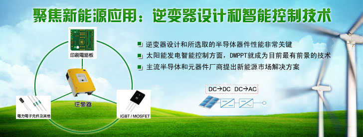 太陽能發(fā)電系統(tǒng)對半導體器件有什么樣的要求?這篇文章可以告訴大家。A/D轉(zhuǎn)換器、整流器、IGBT模塊、驅(qū)動、傳感、MCU以及電容等元器件廠商都有望在新得市場上獲得契機。這些器件中,最重要的是逆變器,它的任務(wù)是把光伏單元可變的直流電壓輸出轉(zhuǎn)換為清潔的50Hz或60Hz的正弦電壓源,為了保證輸出電壓的穩(wěn)定,需要一系列器件的配合,例如傳感器來跟蹤太陽方位角、A/D轉(zhuǎn)換器來實現(xiàn)數(shù)據(jù)轉(zhuǎn)換,MCU來實現(xiàn)穩(wěn)定輸出的算法……那么主流半導體和元器件廠商是如何針對新能源市場打造解決方案的?我們將業(yè)界的趨勢和熱點作一次總結(jié),希望對讀者提供一定參考。