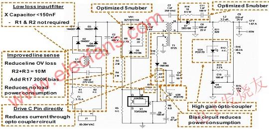 圖1:用PowerIntegrations的TOPSwitch-HX優(yōu)化過的開關電源。